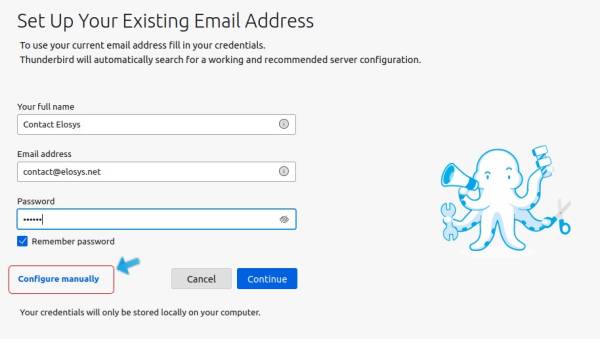 - Execute ThunderBird and Fill the information about your account then Click on Configure Manually