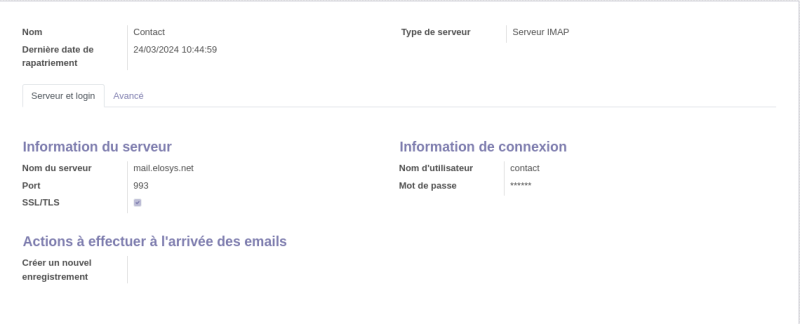 - Click on Incoming email Servers (Serveurs email Entrants)